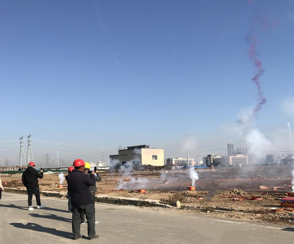 20211112日上午9:28分,江蘇德邦興華化工科技有限公司污水站場地鞭炮齊鳴,由江蘇永超建設有限公司承建的污水站土建工程項目舉行了盛大的開工典禮。德邦興華科技公司常務副總經理李國安、永超公司總經理胡茂懷等領導出席了開工典禮。污水站土建工程開工,標志著我公司三大水處理系統工程包括凈水站、脫鹽水站及污水站已全面進入施工階段,希望在我公司與施工單位的共同努力下,盡早完成三大水處理項目施工并投入運行,為東區整體項目的順利投產提供水系統保障。