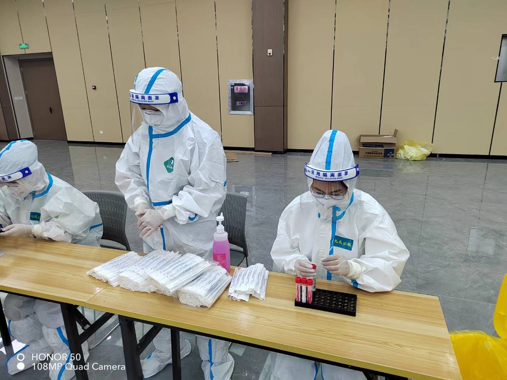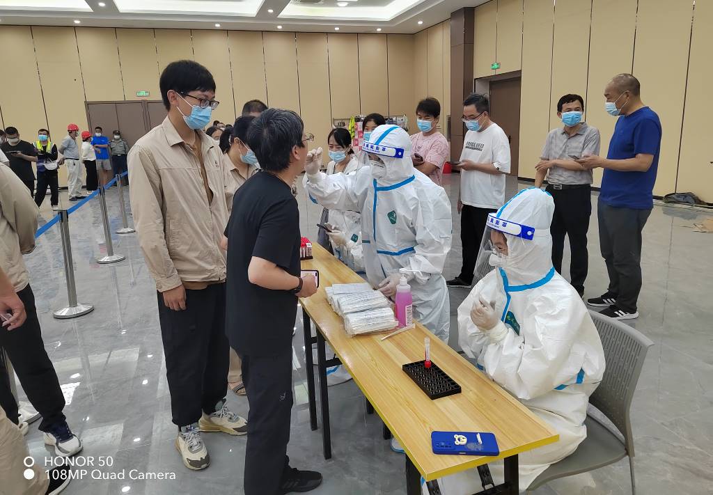 7月11日-7月15日,興華科技公司防疫人員積極配合徐圩新區防疫組的工作,布置好核酸檢測現場,派出員工作為志愿者協助醫護人員檢測,組織廠區內所有人員有序參加核酸檢測,做到應檢盡檢。