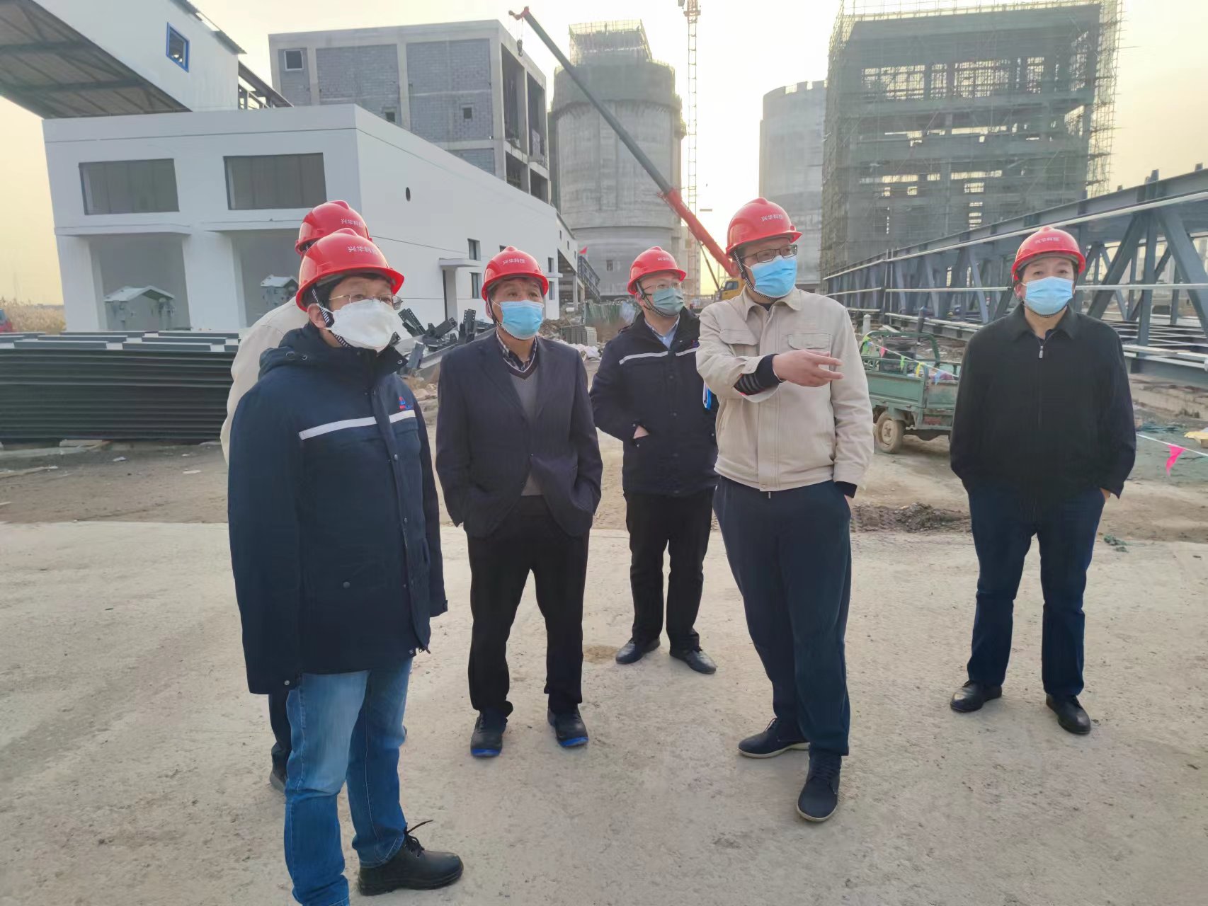 1213日下午,董事長趙祥海攜集團行政總監王紹高一行到興華科技公司視察指導工作,總經理卓士彬、常務副總經理李國安等公司主要領導陪同并分別向董事長介紹了項目建設進度、生產準備工作和工藝技術情況。在施工現場考察后,董事長還組織合成、聯堿等項目部主要負責人員召開專題會議討論生產準備和技術經濟有關問題。董事長在會議中指出,興華科技公司建設和生產準備工作的核心要求就是產品質量做到最好、水電氣等各項平衡達到最優、公司經濟效益達到最高,達到裝置生產效率最大化。